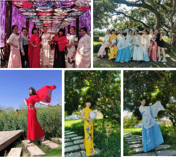 素質(zhì)拓展過后,婦委會開展了濱海巾幗別樣“美” 的游園展風(fēng)采活動。女職工紛紛換上古色古香的漢服、旗袍,前往花的海洋感受春的氣息,進(jìn)行賞花、合影,將煩惱與壓力釋放在花香鳥語中。