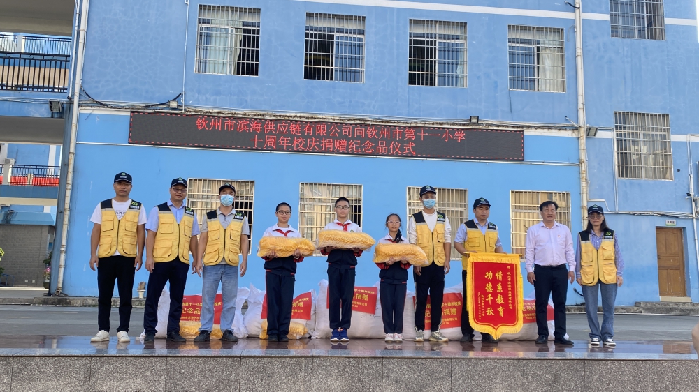 教育扶持是一項意義重大的民心工程,是一份責任。10月26日,在欽州市第十一小學十周年校慶到臨之際,欽州市濱海供應(yīng)鏈有限公司向該校捐贈價值約2萬元的太陽帽等物資。一直以來,供應(yīng)鏈公司秉承國企擔當,穩(wěn)企業(yè)發(fā)展,為保障學校食堂食品安全盡綿薄之力做能及之事。