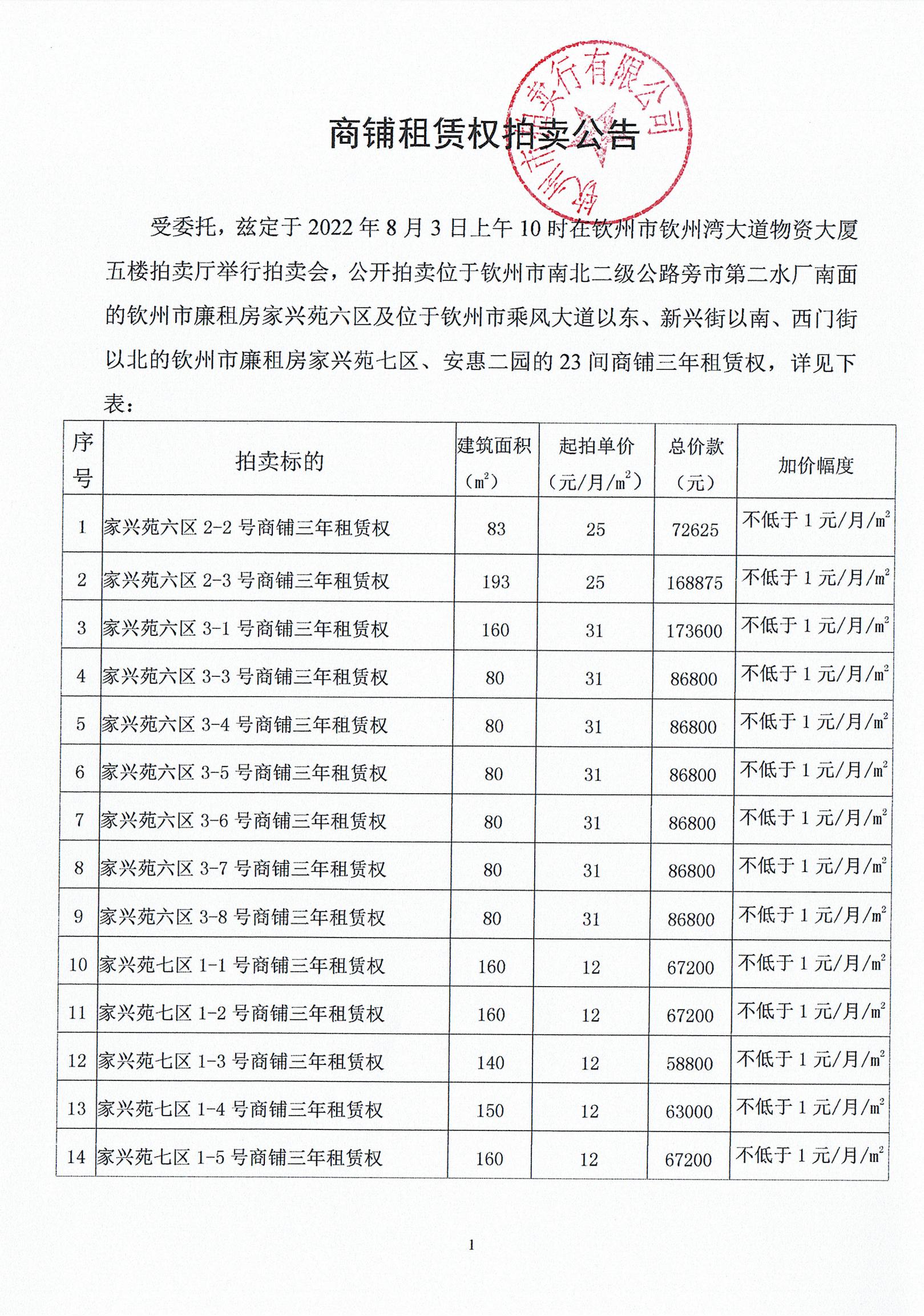 (家興苑六區(qū)、七區(qū)、安惠二園)商鋪租賃權(quán)拍賣公告