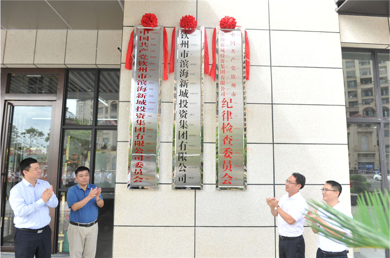 2021年8月12日,欽州市濱海新城投資集團(tuán)有限公司新辦公場所揭牌儀式順利舉行。10點(diǎn)28分,市委常委、副市長姚永福,市國資委副主任陸世球,集團(tuán)公司總經(jīng)理黃兆明、黨委副書記卜玉聲,共同揭牌。紅幕徐徐落下,現(xiàn)場響起一片熱烈的掌聲。揭牌儀式由集團(tuán)公司副總經(jīng)理?xiàng)钚聴澲鞒帧?揭牌儀式結(jié)束后,姚永福、陸世球參觀集團(tuán)公司新辦公場所,與集團(tuán)公司領(lǐng)導(dǎo)座談。