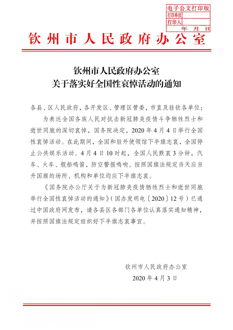 關(guān)于落實(shí)好全國性哀悼活動(dòng)的通知