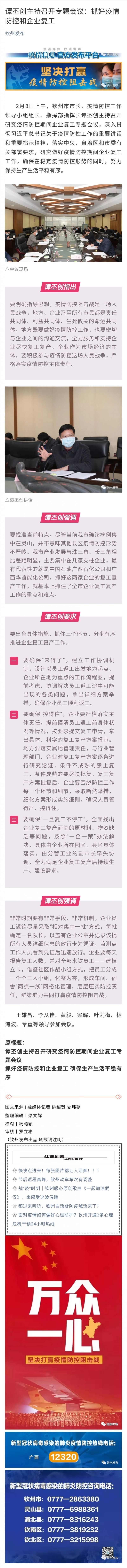 譚丕創(chuàng)主持召開專題會(huì)議:抓好疫情防控和企業(yè)復(fù)工