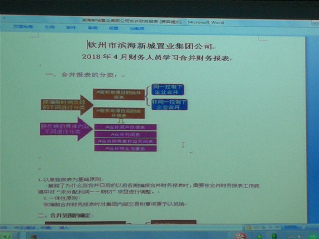 為了提高財務(wù)人員財務(wù)報表編報質(zhì)量和工作效率,2018年4月15日上午,計劃財務(wù)部李東波經(jīng)理主持召開學(xué)習(xí)會,學(xué)習(xí)編制合并報表的相關(guān)業(yè)務(wù)知識,集團(tuán)及各子公司全體財務(wù)人員參會學(xué)習(xí)。會上洪家泰副經(jīng)理講解了合并會計報表及附注的編制方法及要求,規(guī)范和統(tǒng)一報表和附注的格式,并針對同一控制下企業(yè)合并及非同一控制下企業(yè)合并的少數(shù)股東權(quán)益、歸屬于母公司所有者權(quán)益進(jìn)行了詳細(xì)講解。
