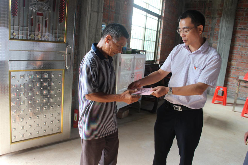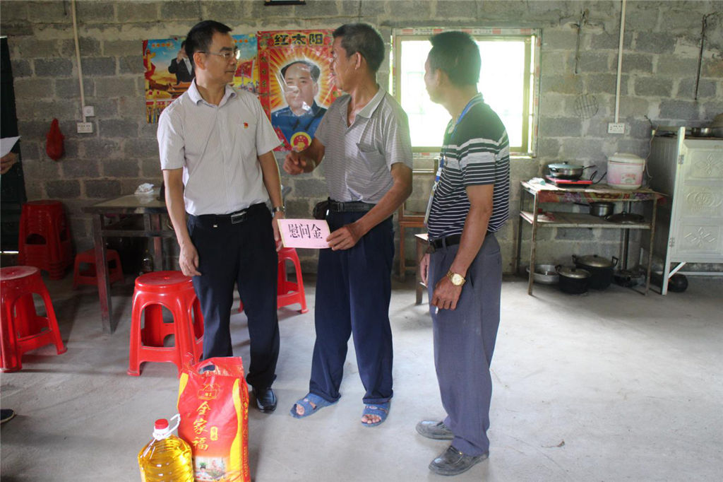 為紀(jì)念建黨97周年,弘揚(yáng)黨的光榮傳統(tǒng)和優(yōu)良作風(fēng),充分體現(xiàn)黨組織對(duì)基層黨員的關(guān)懷和愛護(hù),6月28日上午,集團(tuán)公司黨委副書記覃世金率部分黨員干部來到幫扶村—靈山縣伯勞鎮(zhèn)新禾村,開展集團(tuán)公司“七一”慰問生活困難黨員、老黨員和村干部活動(dòng),為他們送去慰問金和慰問品,同時(shí)也對(duì)集團(tuán)公司幫扶的貧困戶進(jìn)行了入戶走訪。 在慰問活動(dòng)中,每到一戶慰問對(duì)象家中,集團(tuán)公司領(lǐng)導(dǎo)干部都和老黨員親切交談,傾聽老黨員暢談革命往事,詳細(xì)了解他們的身體狀況和生產(chǎn)情況,幫助他們解決生活中的難題,征求意見和建議,使他們精神上得到更多的鼓勵(lì),切身感受到黨組織的關(guān)懷。慰問中,集團(tuán)公司領(lǐng)導(dǎo)干部對(duì)老黨員多年來為黨的事業(yè)作出的貢獻(xiàn)表示感謝,并鼓勵(lì)他們要保持堅(jiān)定不移的信念,樹立戰(zhàn)勝困難的信心,繼續(xù)發(fā)揮余熱,為新禾村的發(fā)展積極建言獻(xiàn)策。接受慰問的老黨員們都十分感謝集團(tuán)公司領(lǐng)導(dǎo)在百忙之中抽空前來看望和慰問,這讓他們倍感黨的關(guān)懷和愛護(hù),并表示將一如既往地為村里各項(xiàng)工作獻(xiàn)出自己力所能及的力量。 ![]()