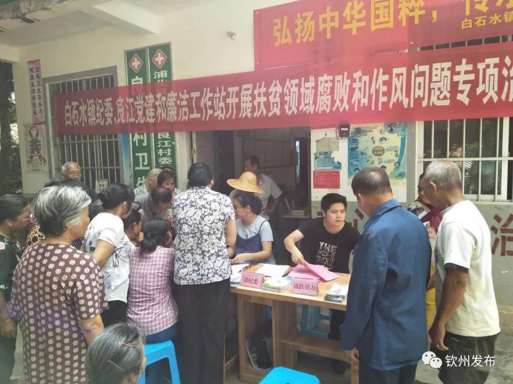 ▲黨建和廉潔工作站工作人員在良江村開展扶貧領(lǐng)域腐敗和作風(fēng)問題專項治理公開大接訪活動