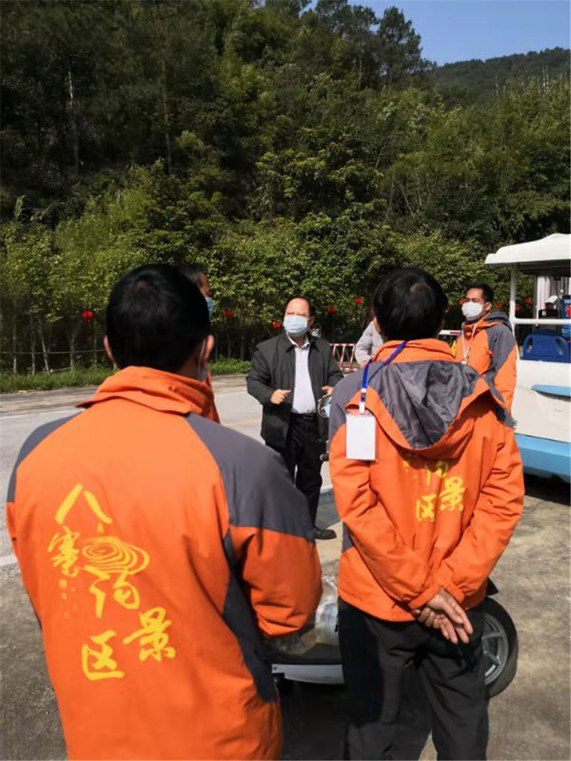 二、為進一步傳達市委、市人民政府有關(guān)疫情防控工作的相關(guān)文件精神,公司領(lǐng)導前往景區(qū)現(xiàn)場指導疫情防控工作,特別強調(diào)當前防控工作形式嚴峻,景區(qū)員工要增強緊迫感和責任感,切實加強景區(qū)人員出入管理及消毒清潔,保障游客及公司員工的身體健康和生命安全;