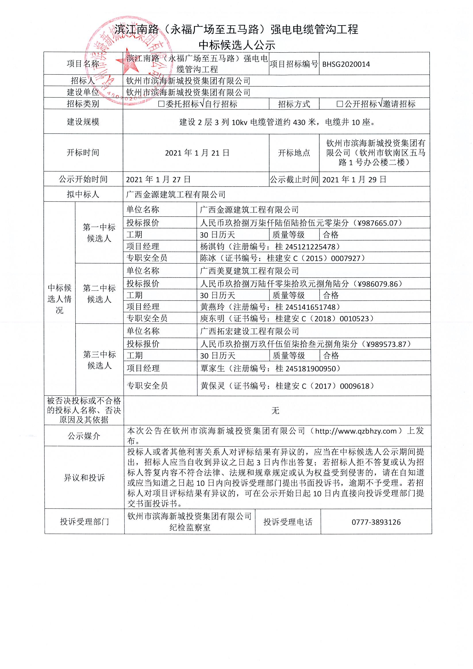 中標(biāo)候選人公示(濱江南路(平南古渡至永福廣場(chǎng)段)高壓線纜管溝項(xiàng)目)