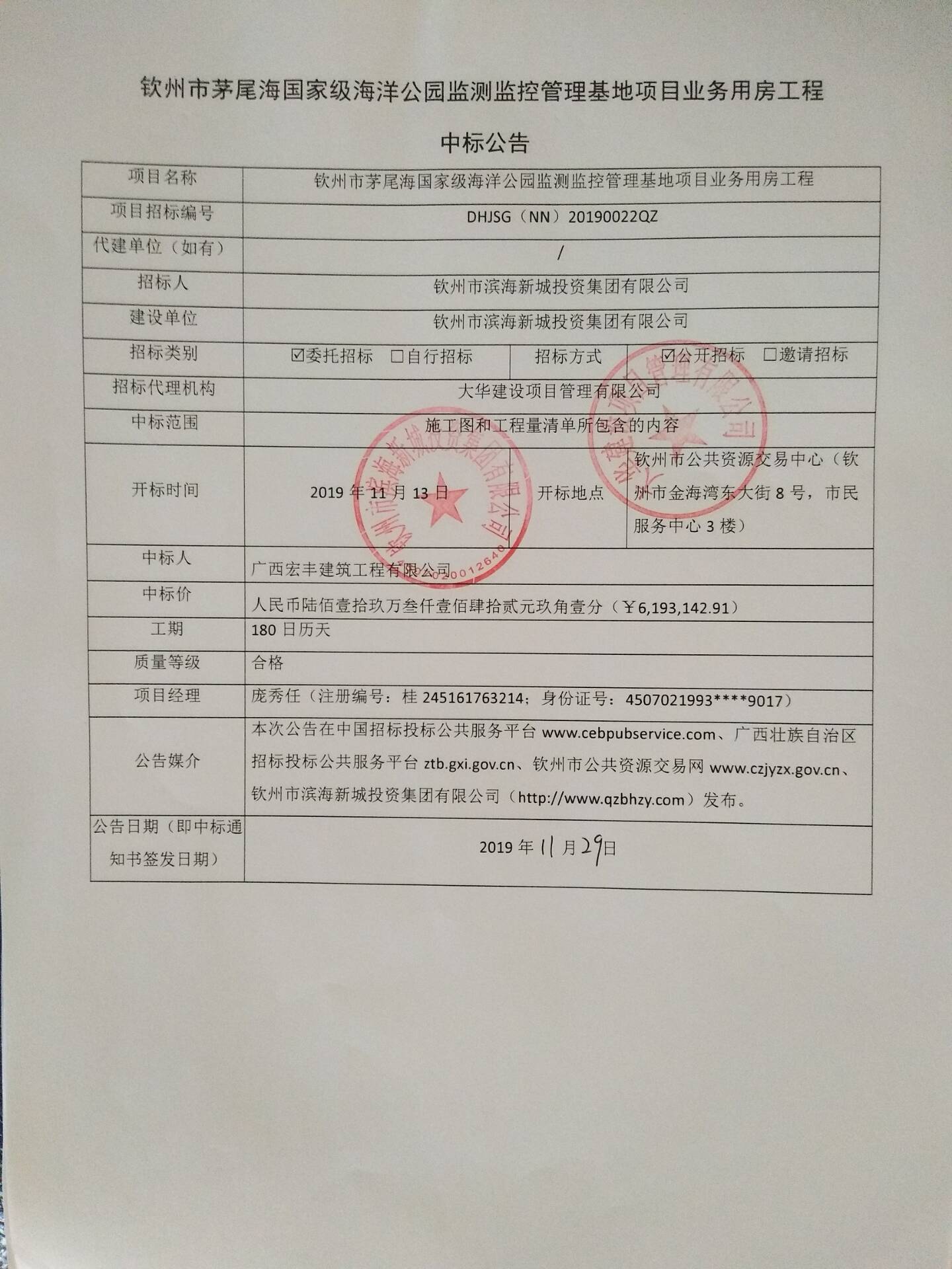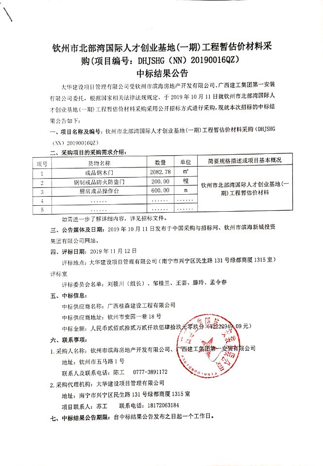 廣西建設(shè)工程機電設(shè)備招標中心有限公司受欽州濱海新城資產(chǎn)管理有限公司委托,根據(jù)相關(guān)規(guī)定,于2019年6月3日就欽州火車東站西北面、南北二級公路南面地塊租賃采用公開招標方式進行采購,現(xiàn)就本次招標的中標結(jié)果公告如下: 一、采購項目名稱及編號:欽州火車東站西北面、南北二級公路南面地塊租...