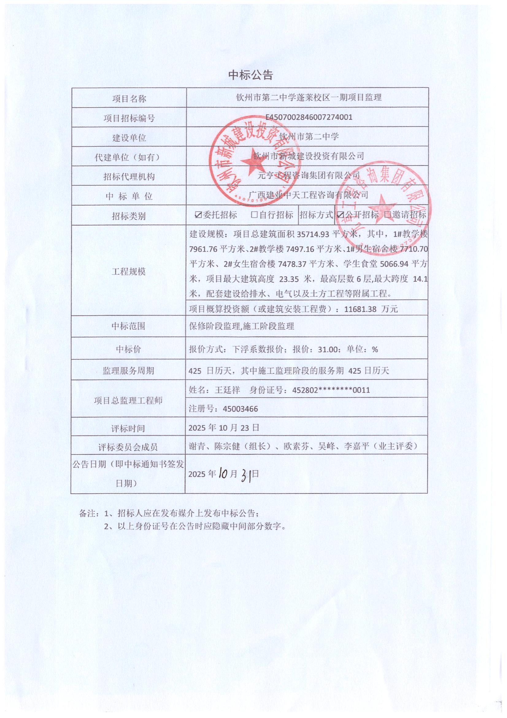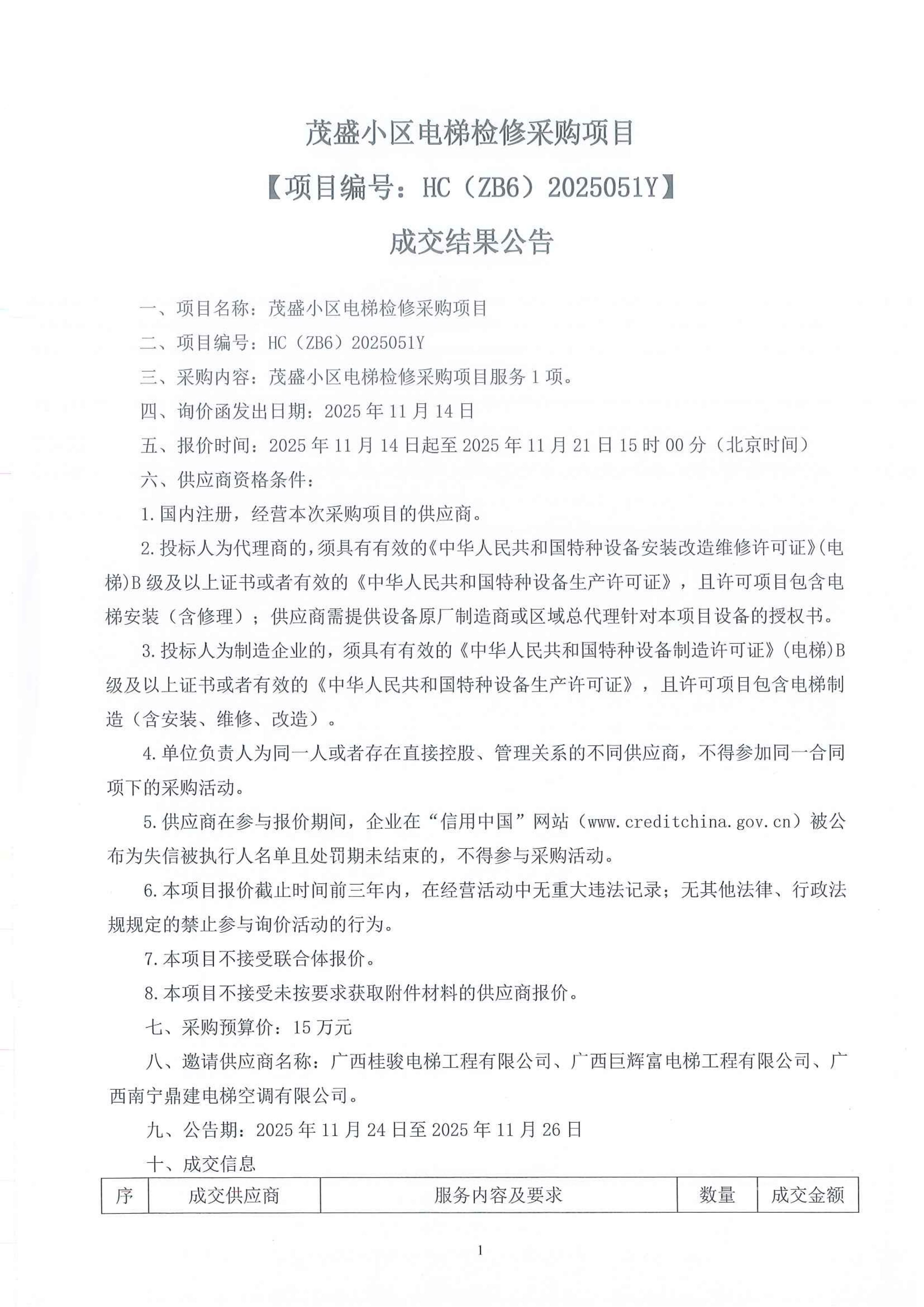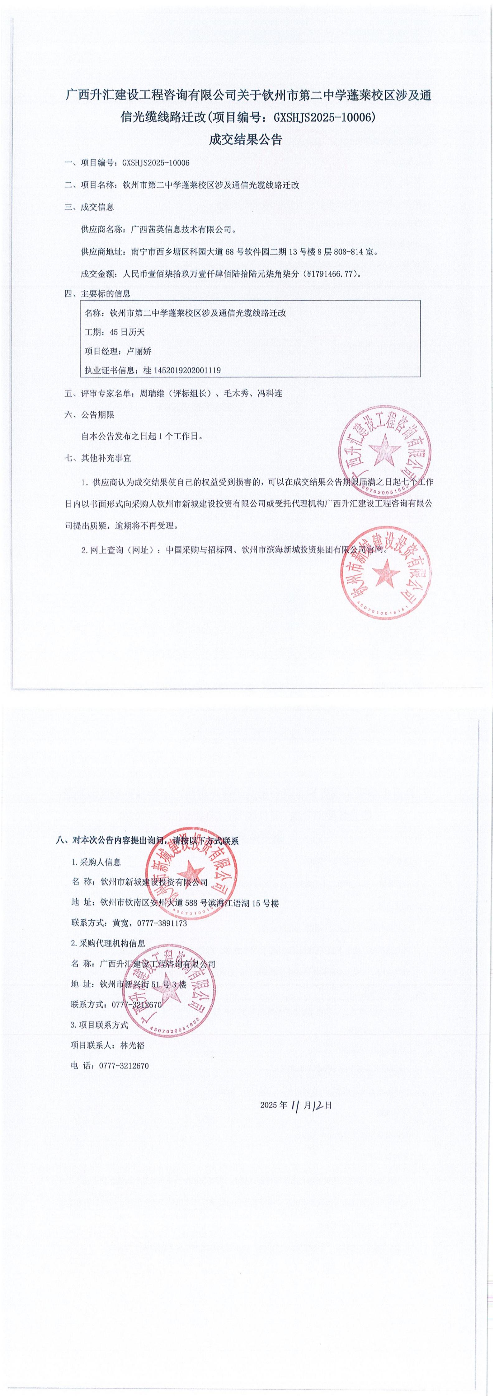 一、項(xiàng)目名稱:賓陽(yáng)縣公共配送中心勞務(wù)派遣服務(wù)項(xiàng)目 二、項(xiàng)目編號(hào):GXJT-2025-QZZC002 三、成交信息: 序號(hào) 入圍供應(yīng)商名稱 管理費(fèi)報(bào)價(jià) (元/人/月) 地址 1 廣西高校聯(lián)盟教育投資集團(tuán)有限公司 80.00 南寧市江南區(qū)同樂大道53號(hào)泉港·江南企業(yè)總部6號(hào)廠...