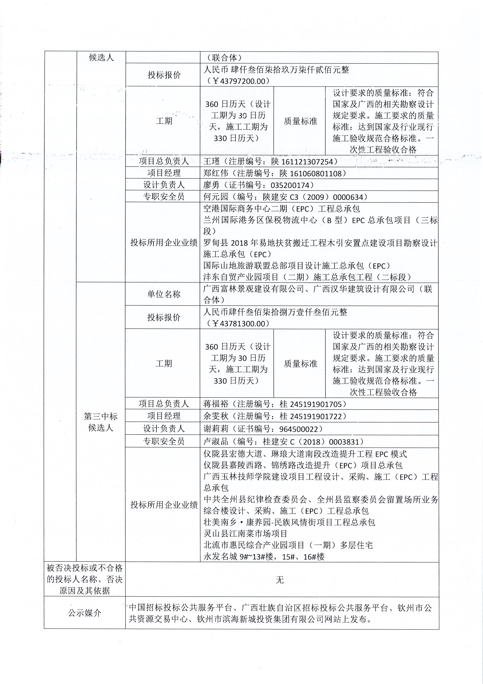 欽州市中山路、占鰲巷旅游開發(fā)項(xiàng)目(一期)道路、外立面、景觀及試點(diǎn)工程設(shè)計(jì)-采購-施工(EPC)工程總承包中標(biāo)候選人公示