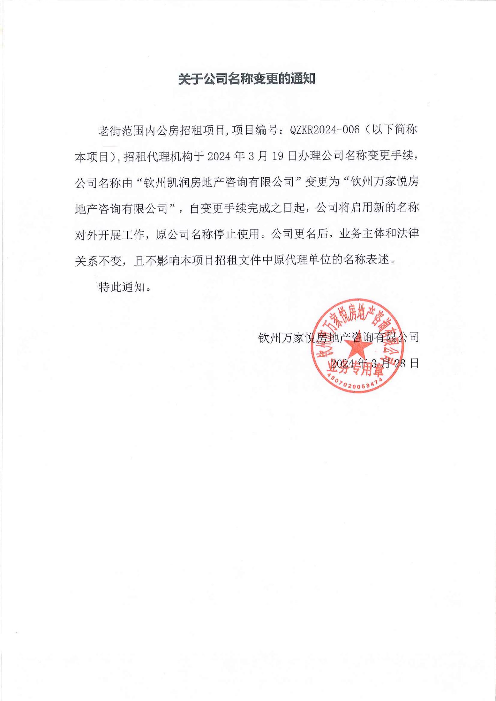 關(guān)于老街范圍內(nèi)公房招租代理公司名稱變更的通知
