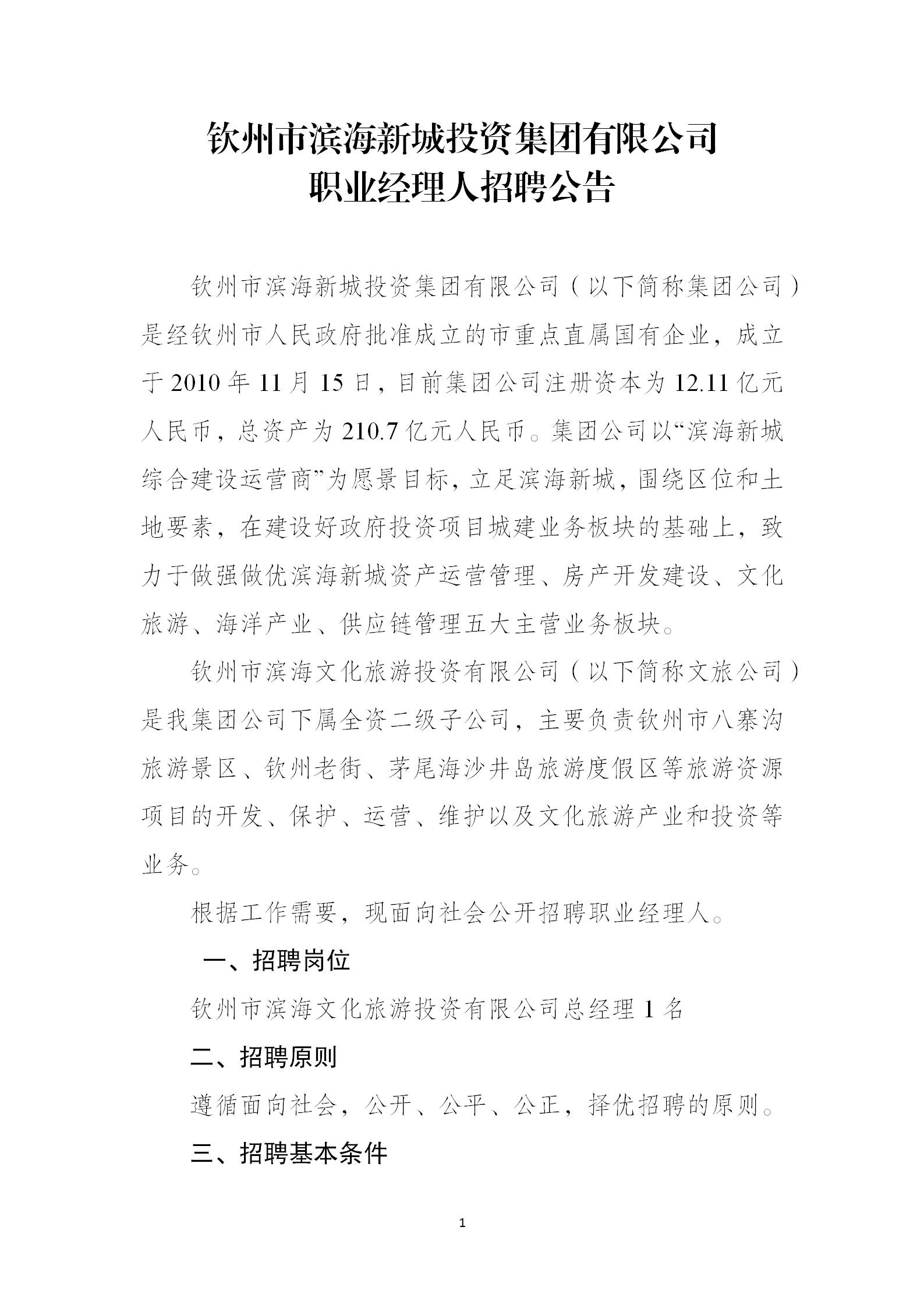 欽州市濱海新城投資集團有限公司職業(yè)經(jīng)理人招聘公告
