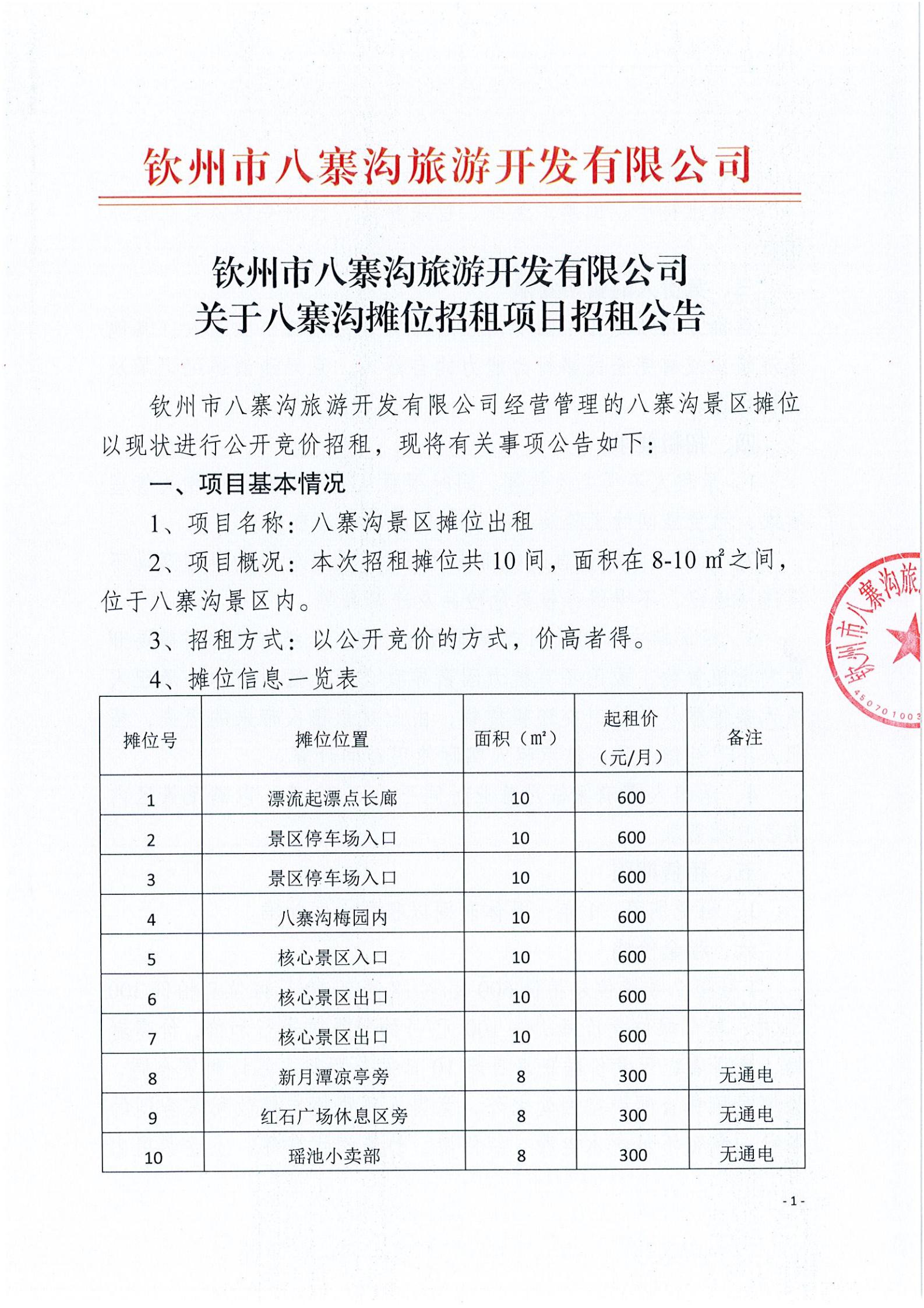 關(guān)于八寨溝攤位招租項(xiàng)目招租公告