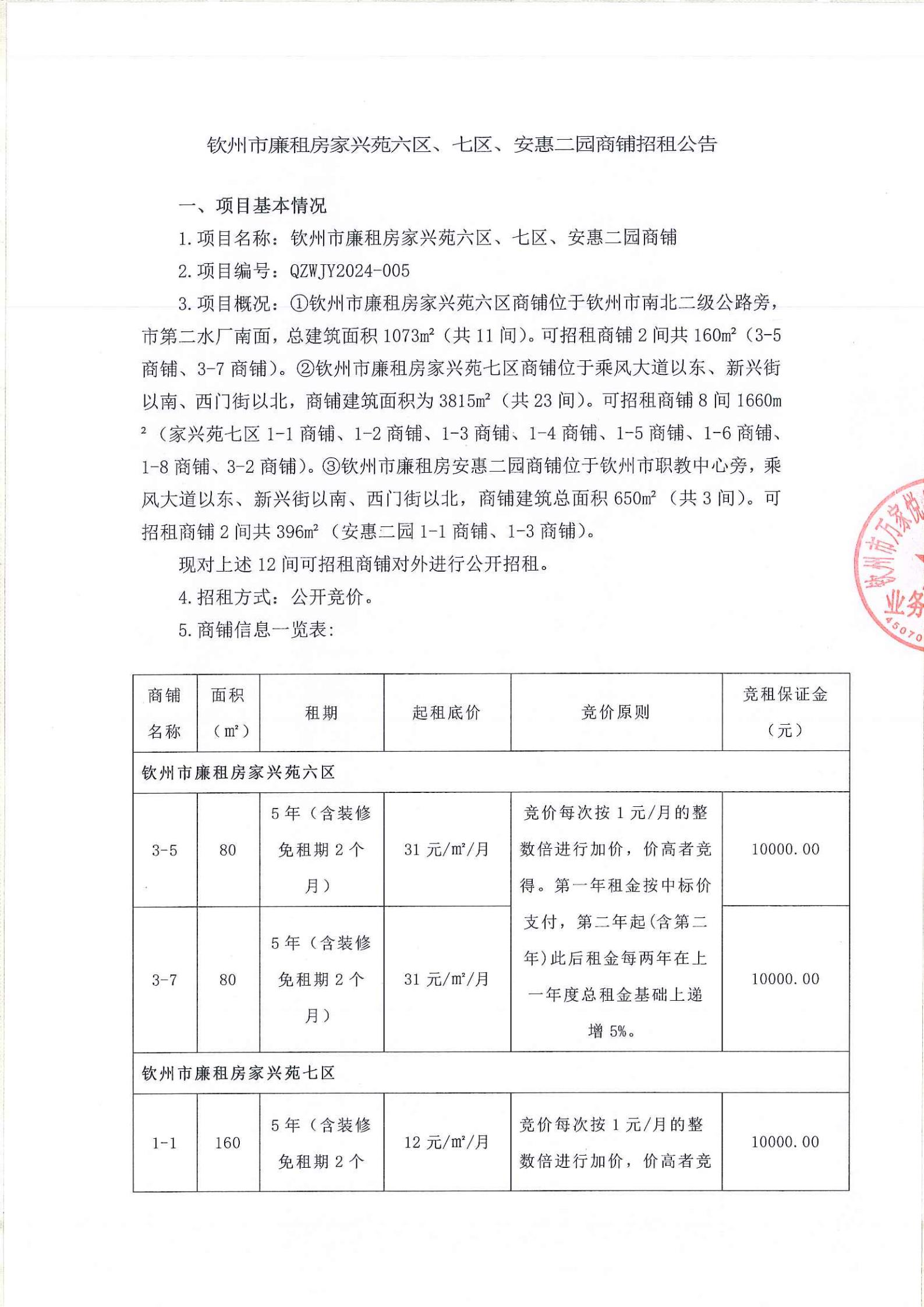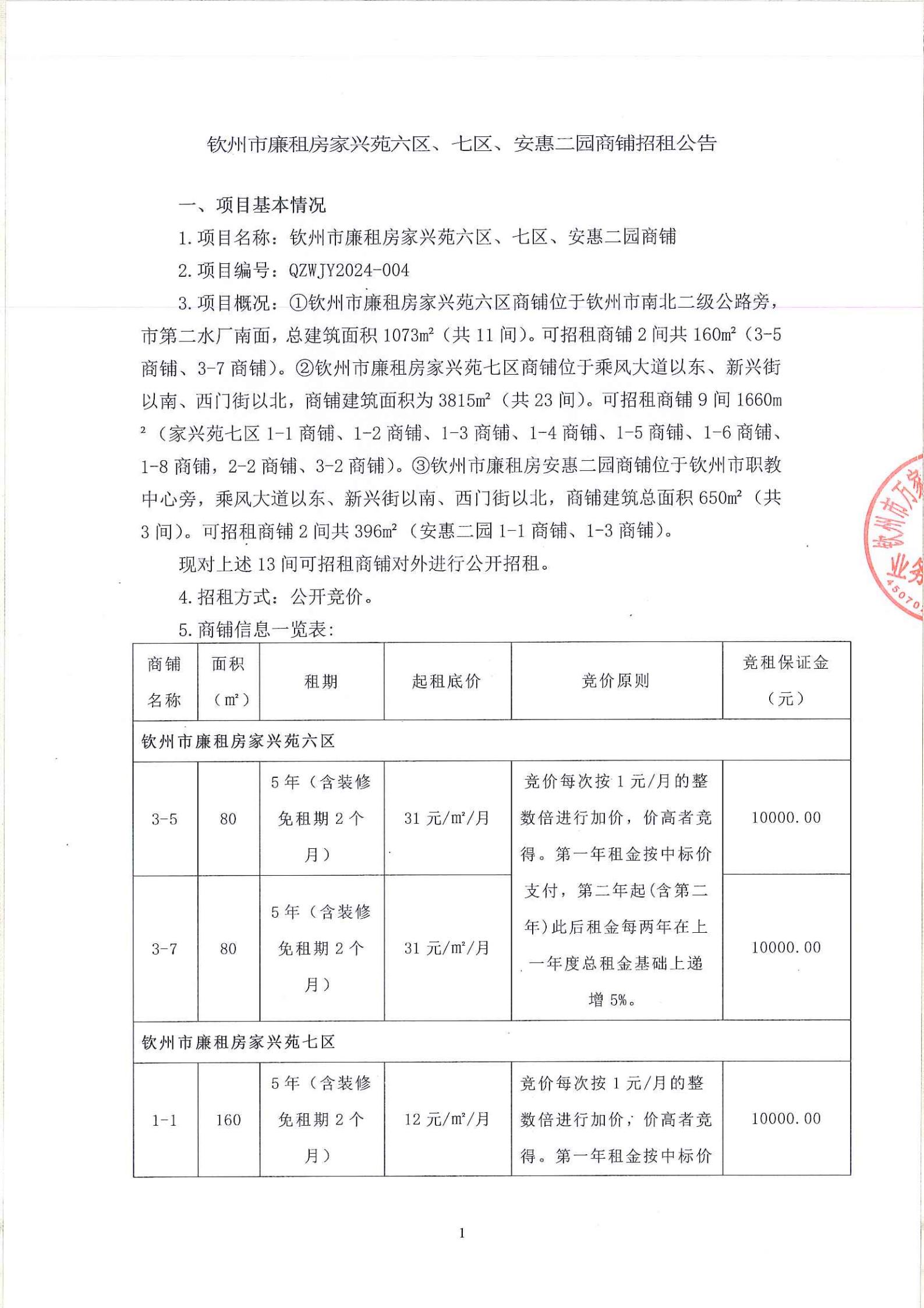 欽州市廉租住房家興苑六區(qū)、七區(qū)、安惠二園商鋪招租公告