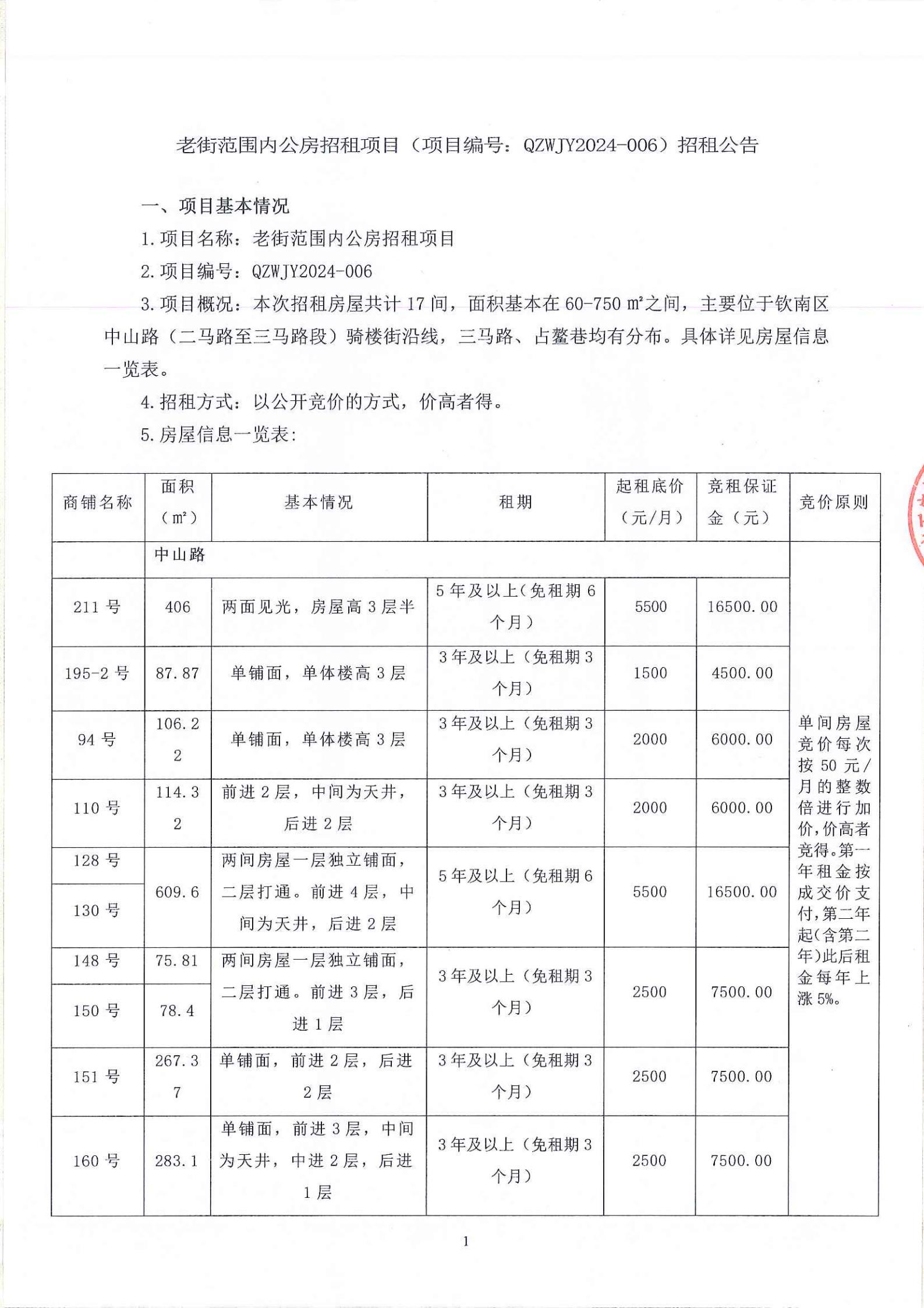 老街范圍內(nèi)公房招租項(xiàng)目(項(xiàng)目編號(hào):QZKR2024-006)招租公告