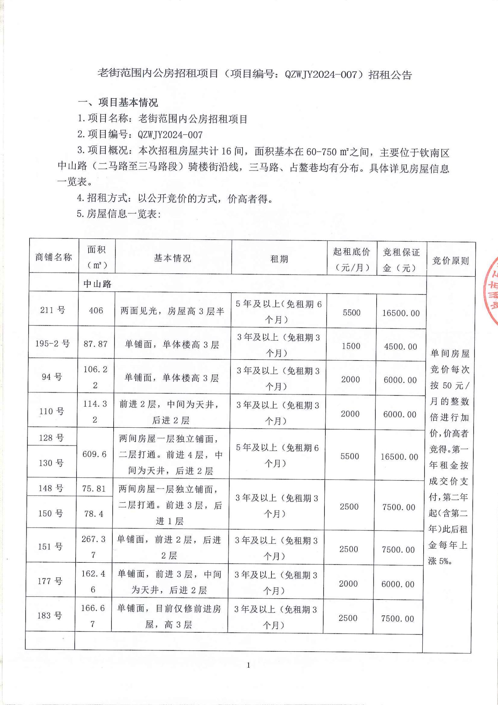 老街范圍內(nèi)公房招租項(xiàng)目(項(xiàng)目編號(hào):QZWJY2024-001)招租公告